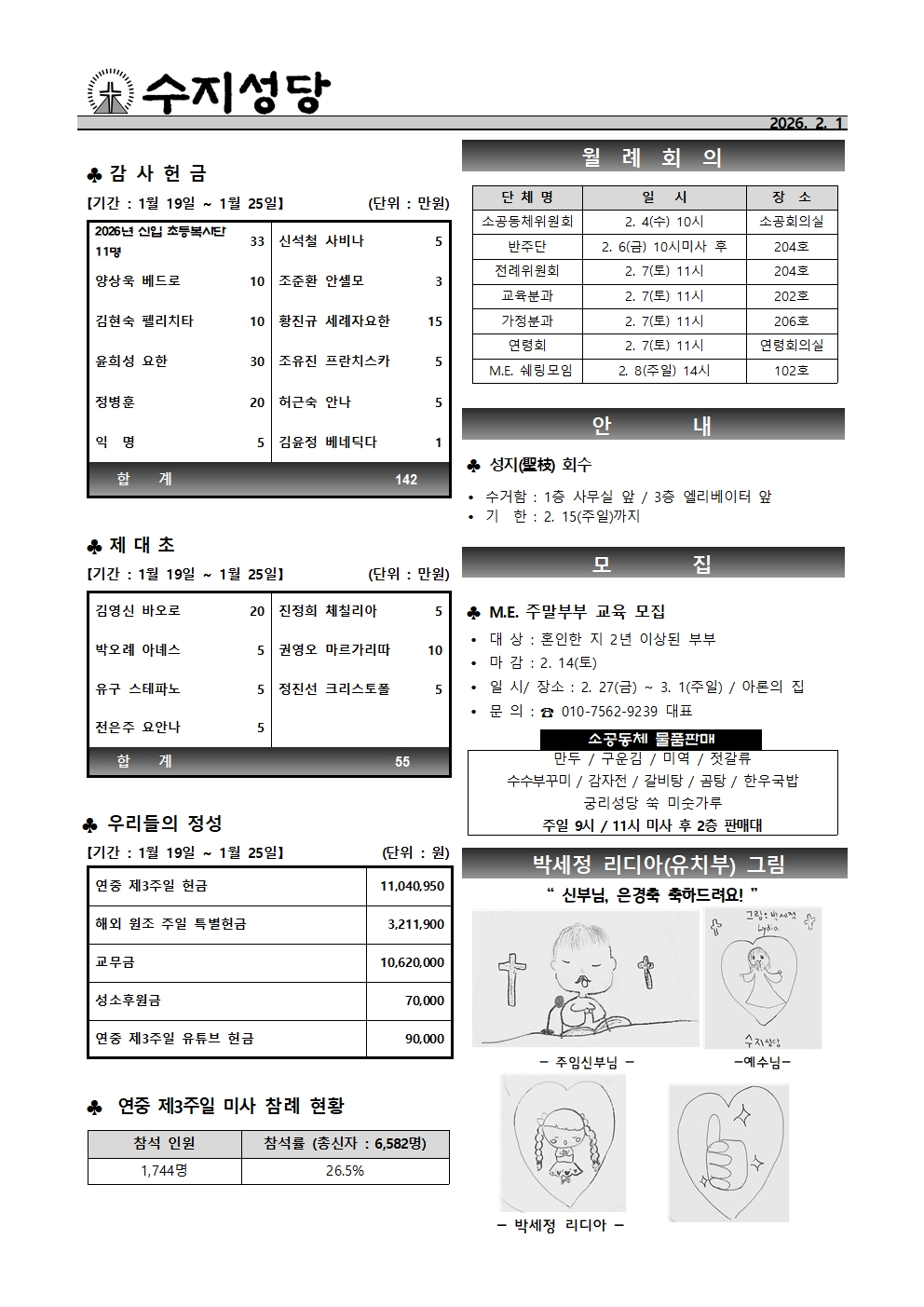 2026. 2. 1 - 연중 제4주일 페이지 정보 작성자 사무실 댓글 0건 조회 601회 작성일 26-01-31 16:13 목록 본문 수원교구 주보는 아래 링크를 클릭하십시오. 관련링크 https://www.casuwon.or.kr/journal/jubo/ebook/2358 123회 연결 https://www.casuwon.or.kr/uploads/cas02/ext_church_journal/2189/book/B… 117회 연결 이전글2026. 2. 8 - 연중 제5주일 26.02.06 다음글2026. 1. 25. - 연중 제3주일(하느님의 말씀 주일 / 해외 원조 주일) 26.01.23 댓글 0 댓글목록 등록된 댓글이 없습니다.