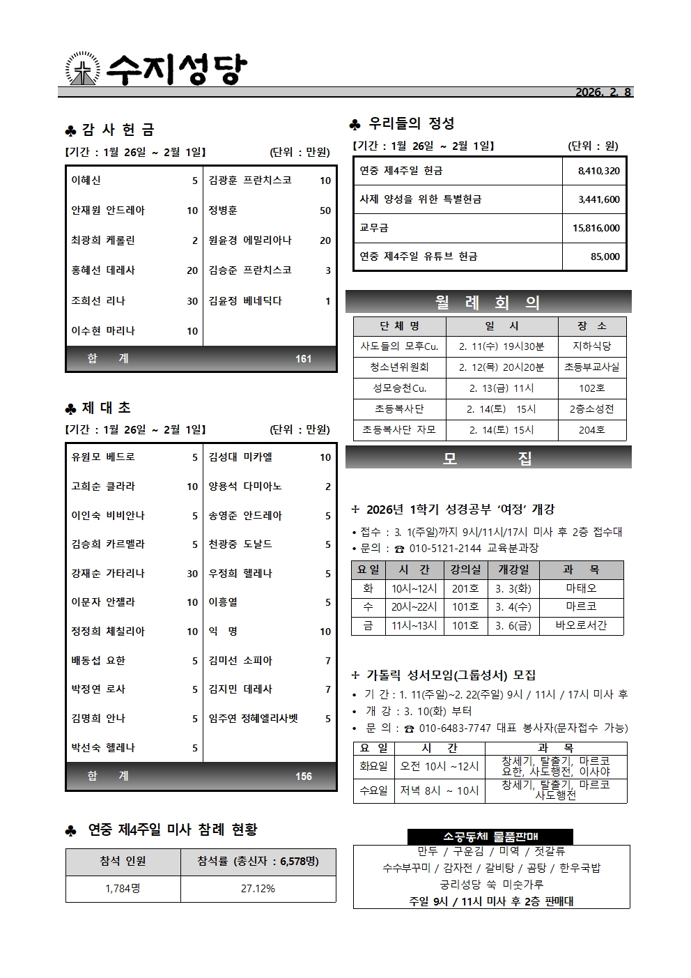 2026. 2. 8 - 연중 제5주일 페이지 정보 작성자 사무실 댓글 0건 조회 655회 작성일 26-02-06 09:09 목록 본문 수원교구 주보는 아래 링크를 클릭하십시오. 관련링크 https://www.casuwon.or.kr/journal/jubo/ebook/2359 87회 연결 https://www.casuwon.or.kr/uploads/cas02/ext_church_journal/2190/book/B… 98회 연결 이전글2026. 2. 15 - 연중 제6주일 26.02.14 다음글2026. 2. 1 - 연중 제4주일 26.01.31 댓글 0 댓글목록 등록된 댓글이 없습니다.
