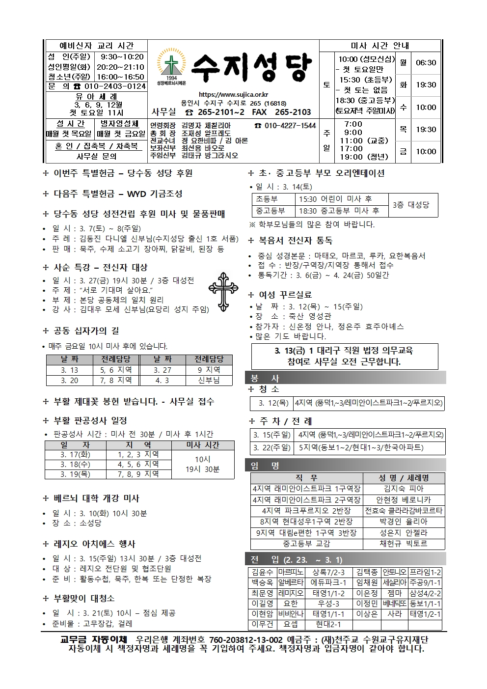 2026. 3. 8 - 사순 제3주일 페이지 정보 작성자 사무실 댓글 0건 조회 344회 작성일 26-03-06 09:07 목록 본문 수원교구 주보는 아래 링크를 클릭하십시오. 관련링크 https://www.casuwon.or.kr/journal/jubo/ebook/2363 19회 연결 https://www.casuwon.or.kr/uploads/cas02/ext_church_journal/2194/book/B… 14회 연결 이전글2026. 3. 15 - 사순 제4주일 26.03.13 다음글2026. 3. 1 - 사순 제2주일 26.02.27 댓글 0 댓글목록 등록된 댓글이 없습니다.