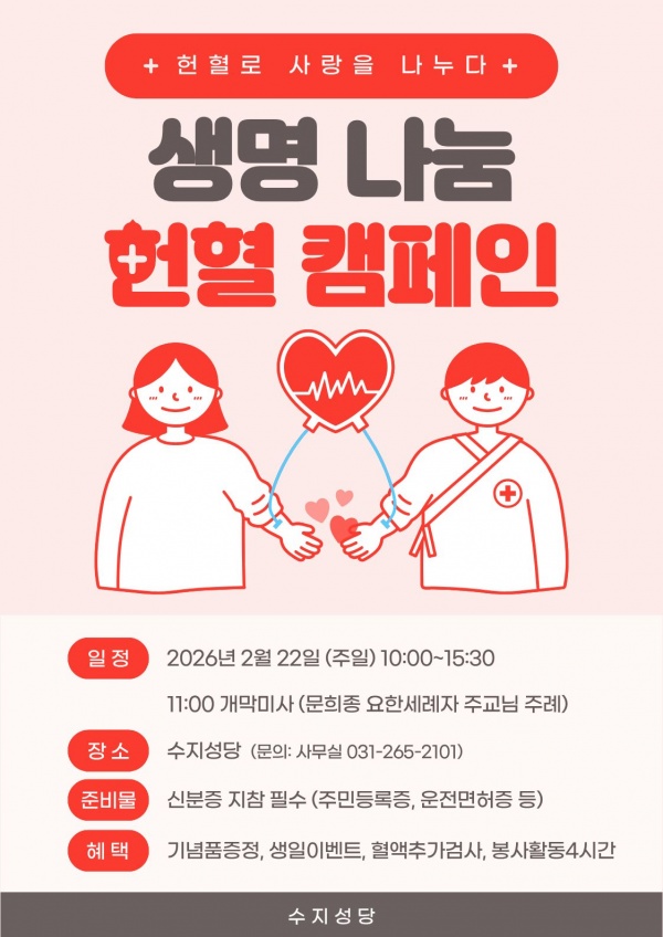 2026 생명나눔 헌혈캠페인 및 개막미사 안내드립니다.