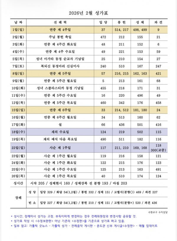 일정표 2026년 2월 성가번호 페이지 정보 작성자 관리자 댓글 0건 조회 573회 작성일 26-01-27 19:14 목록 게시판 리스트 옵션 검색 본문 2026년 2월 성가번호 이전글2월 일정표 26.02.01 다음글26년 1월 일정표 26.01.04 댓글 0 댓글목록 등록된 댓글이 없습니다.